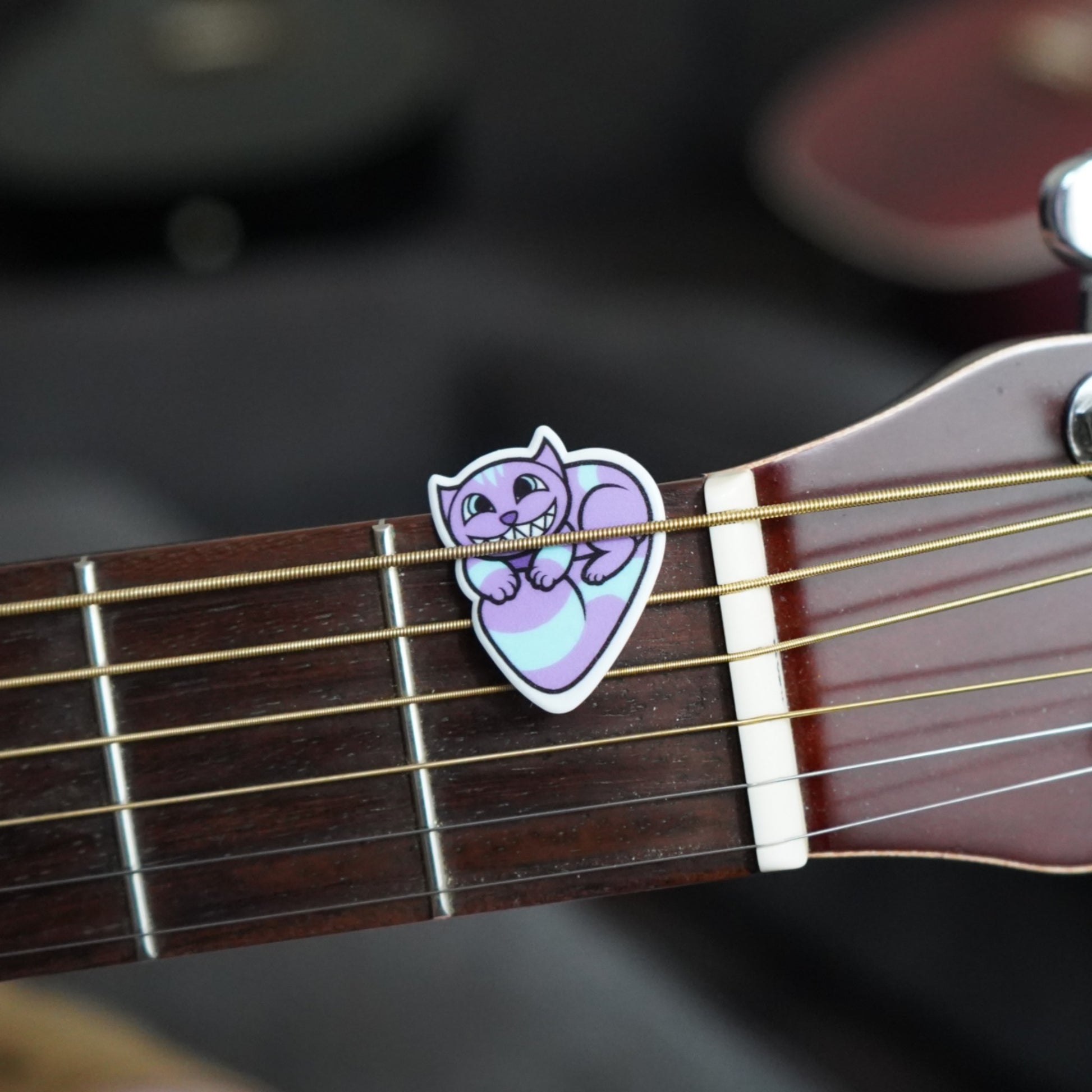 Step into a whimsical musical adventure with the Cheshire Cat Guitar Pick, embodying a mischievous and mysterious play style.